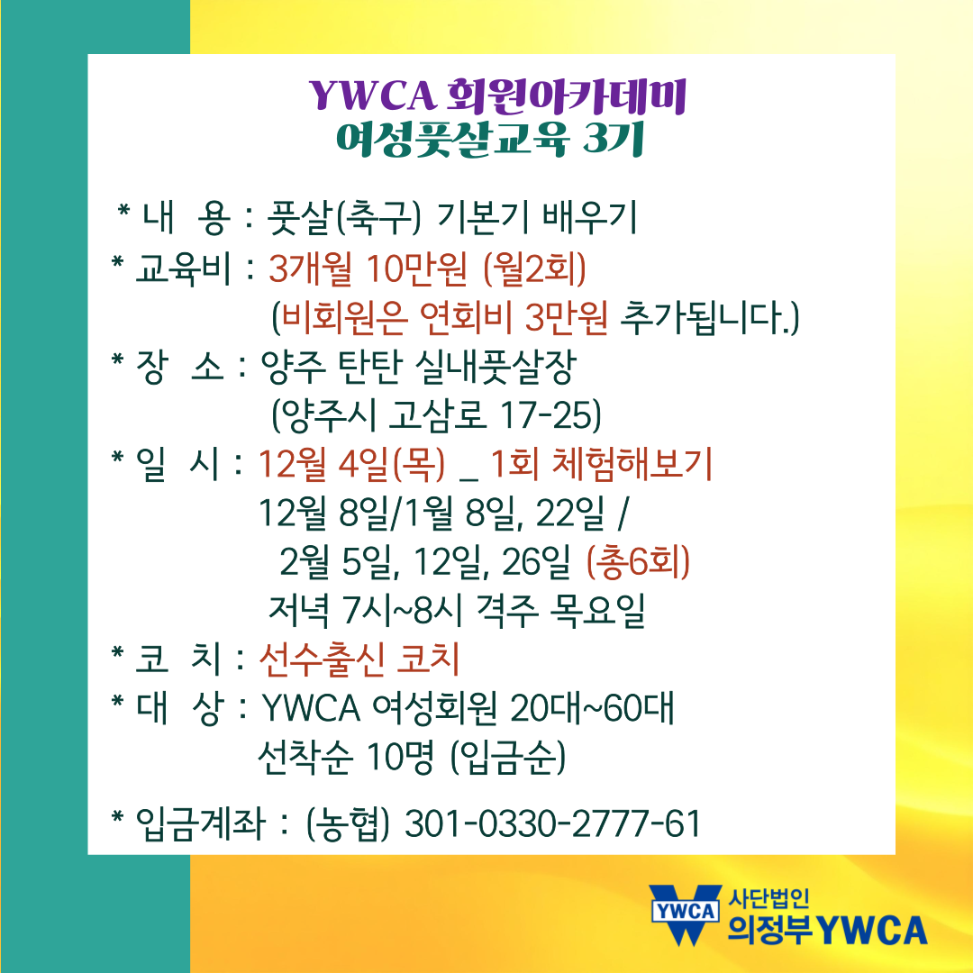 😀 여성풋살단 3기가 곧 시작됩니다~!