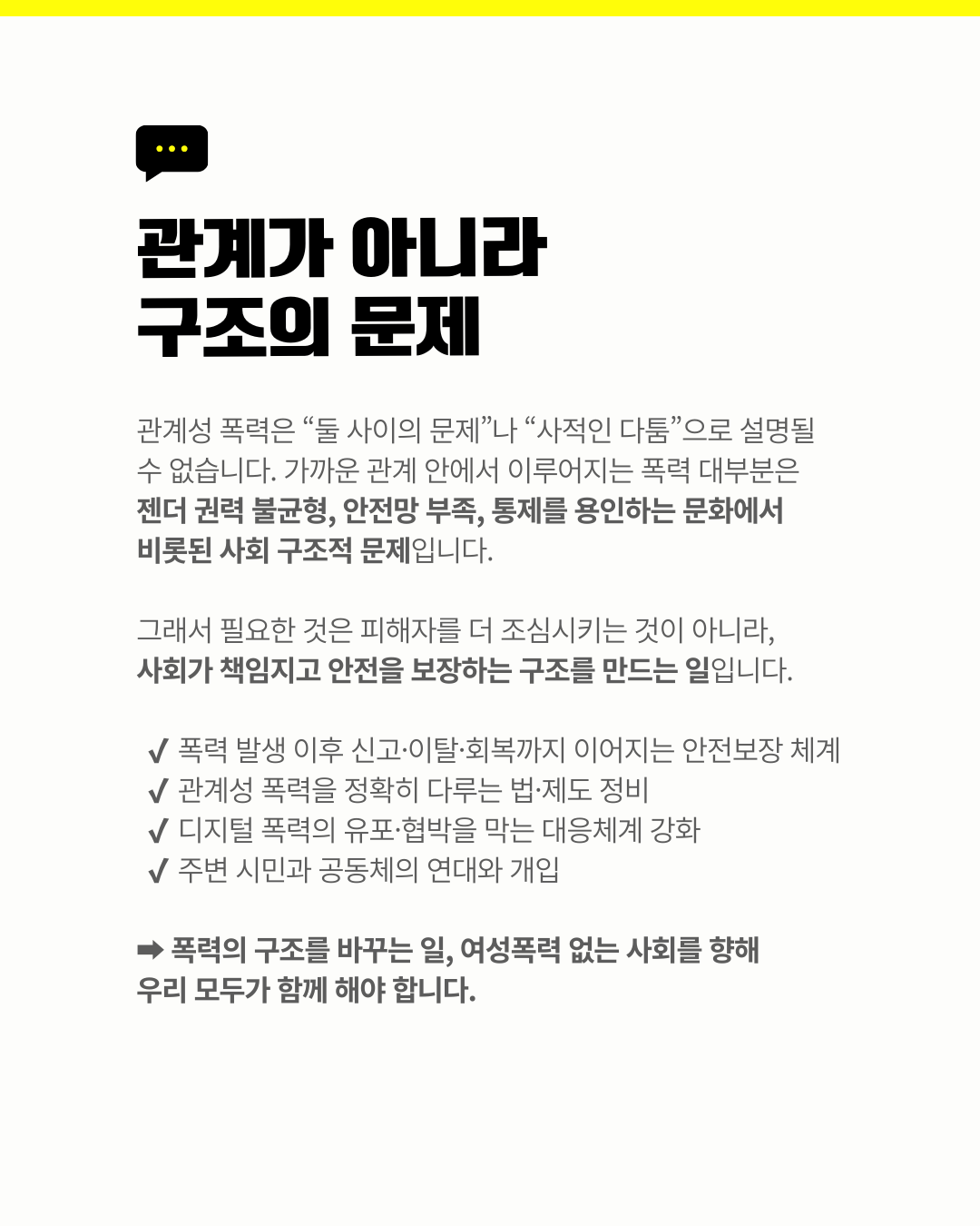 성평등하고 안전한 문화를 위해 우리의 관심과 행동이 필요합니다.